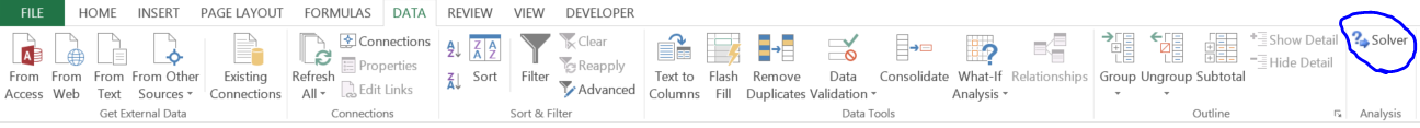 First thing you’ll need to do is enable the Solver add-in (File > Options > Add-Ins > Pick “Excel Add-ins” from the drop-down menu > Go > Select the “Solver Add-in” checkbox > OK) then open it up in the Data tab.