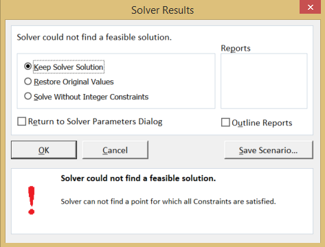 If there are no possible solutions, the Solver dialogue box will tell you.